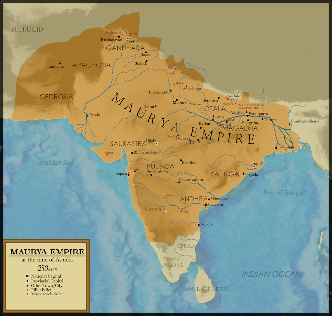 पाटलिपुत्र (आधुनिक पटना) में केन्द्रित मौर्य साम्राज्य में एक विशाल क्षेत्र शामिल था, जिसमें सिंधु-गंगा का मैदान और वे क्षेत्र शामिल थे जो अब अफगानिस्तान, नेपाल, पाकिस्तान, भारत और बांग्लादेश का हिस्सा हैं।
